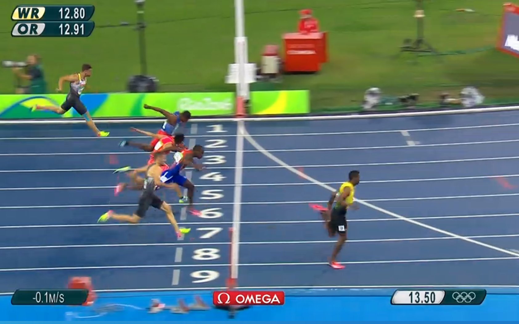 Deuce Carter aced his second chance in the Men’s 110m re-run to qualify for the semi-finals at the Rio Olympics. Watch video of the race below.