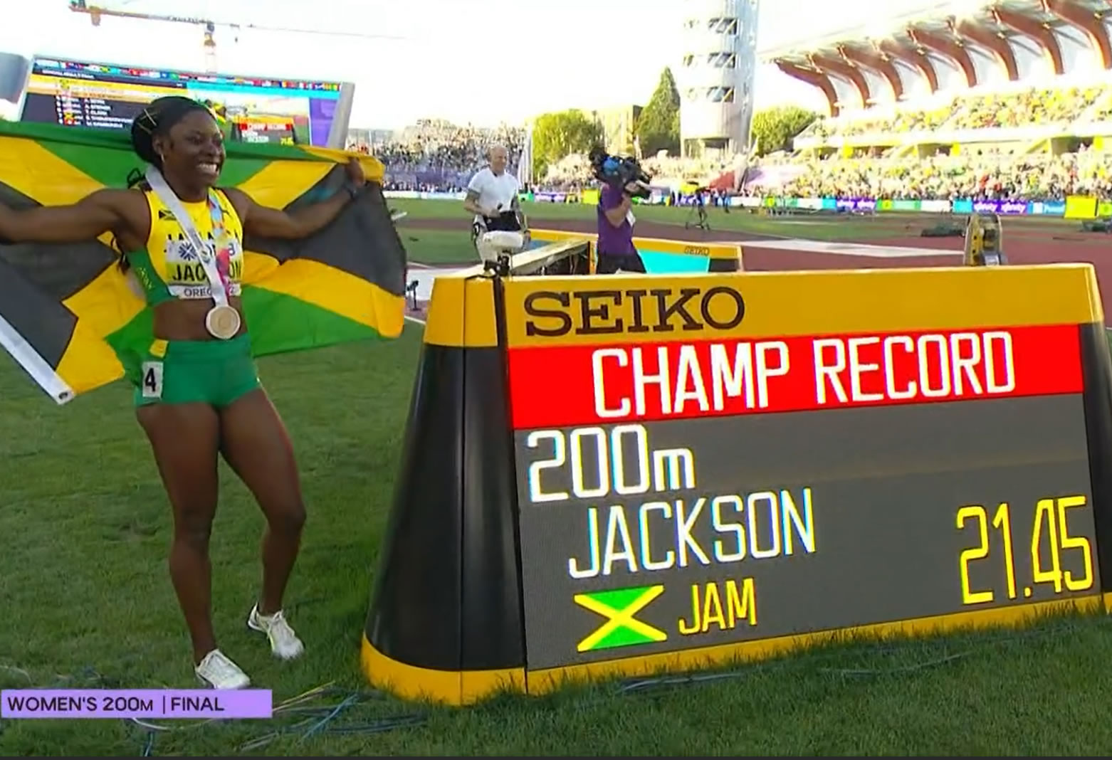 She earned bronze over 400m in 2015 and 2019. Earlier in the championships, she took silver over 100m. Now Shericka Jackson has a complete set of World Championship medals spanning three sprint distances after winning the 200m here in Oregon.